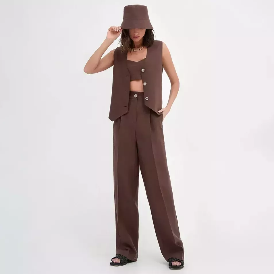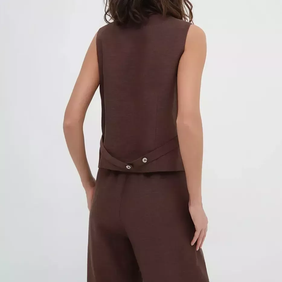 Embrace elegance and comfort with our Chic Brown Cotton-Linen Blend Sleeveless Vest & Pants Suit. Tailored for the contemporary woman who values style as much as comfort, this ensemble is your ticket to sophisticated simplicity. Ideal for various occasions, from a laid-back brunch to a professional setting, this two-piece set is your go-to for making an impression while staying utterly at ease.