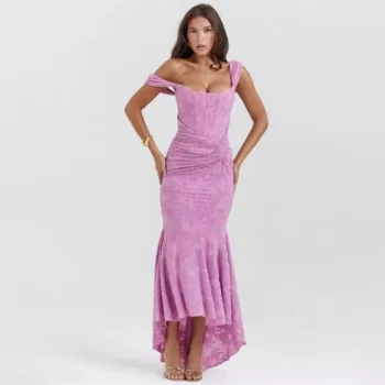 Elegant Off-Shoulder Bodycon Maxi Dress – Chic Nightclub Party Dress