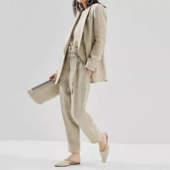 Elegant Cotton Linen Women’s Blazer and Pants Set