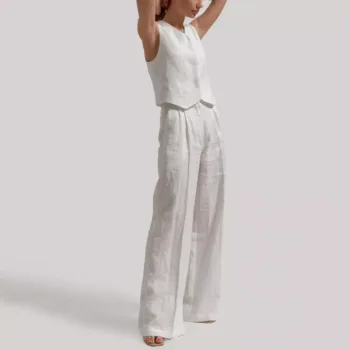 Elegant Cotton Linen Vest Outfit with High Waist Wide Trousers