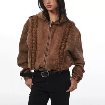 Women’s Retro M65 Denim Fishtail Jacket – Loose Fit, Mid-Length Windbreaker