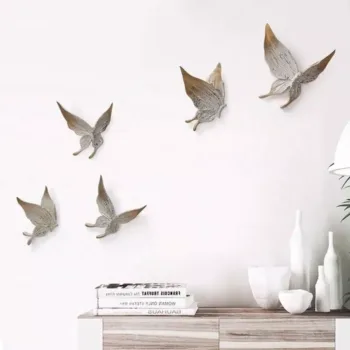 Elegant 5-Piece White & Gold 3D Butterfly Wall Decor – Resin Sculptures for Home