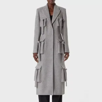 Gray Blue Bat Sleeve Trench Coat with Double Breasted Design