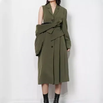 Ladies Elegant A-Line Trench Coat with Windproof Pleated Overcoat and Belt