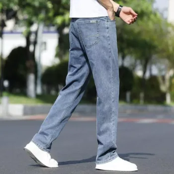 Light Blue Casual Summer Denim Jeans – Men’s Loose Straight Drawstring Trousers