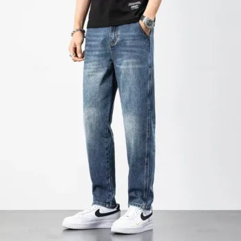 Men’s Vintage Casual Jeans – High Waist Straight-Leg Denim